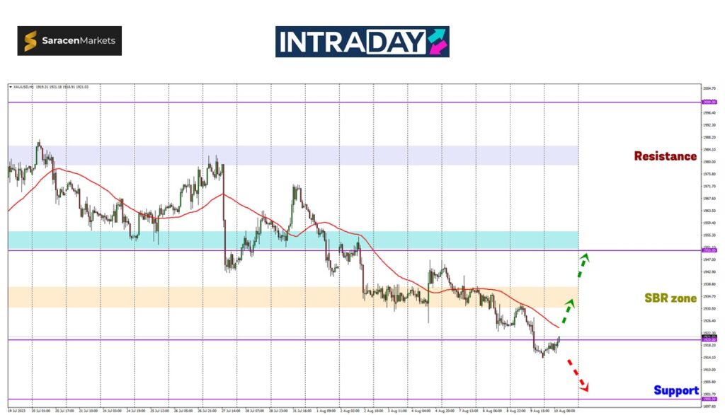Pada carta XAU/USD yang mengukur nilai emas berbanding US dolar telah menyaksikan harga menjunam di bawah paras penting 1920.00.