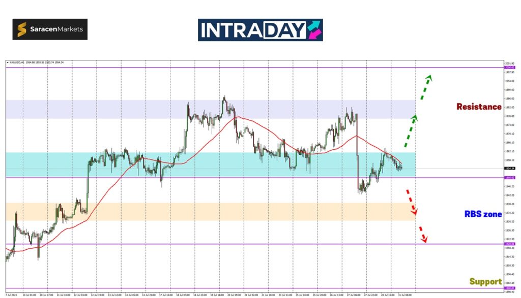 Namun jika berlaku lonjakan harga emas di awal minggu ini, kenaikan harga bakal menuju semula ke zon rintangan minggu lalu pada ketinggian 1980.00.