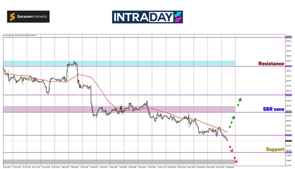 Setakat dagangan sesi Eropah, harga telah susut ke sekitar 1820.00 dan berkemungkinan boleh jatuh lebih rendah pada sesi terakhir.