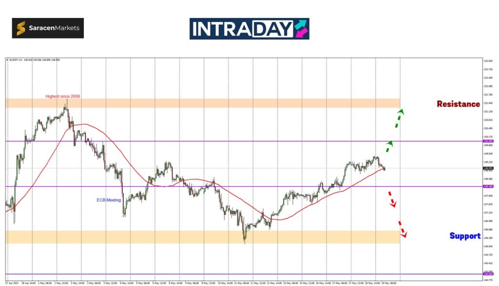 Penurunan lanjut yang diteruskan akan mensasarkan pada zon support 146.200 yang telah dicecah harga pada minggu lalu.