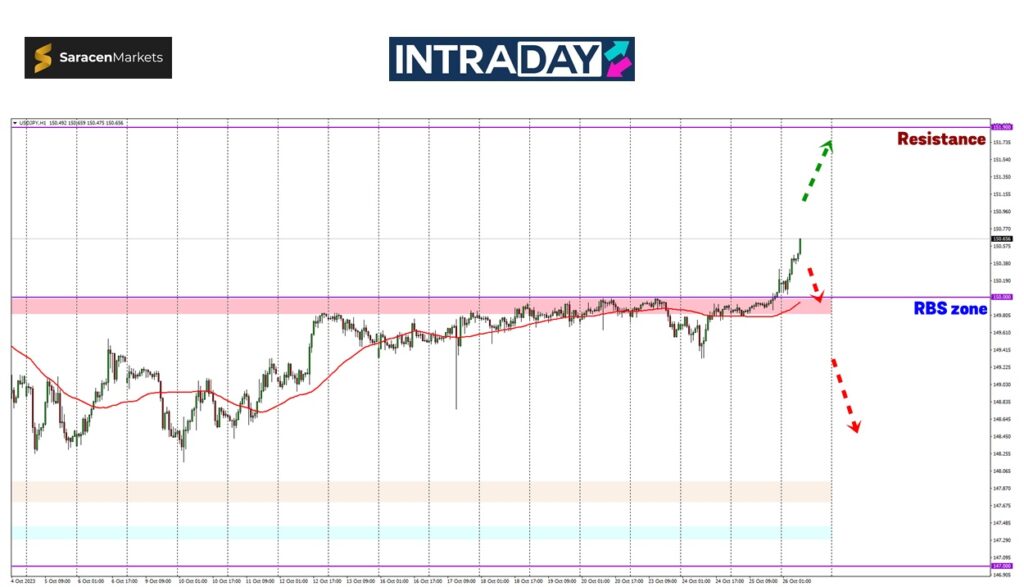 Jika berlaku campur tangan secara terus dalam pasaran, harga boleh menjunam drastik di bawah 150.00 semula dengan paras-paras tumpuan sebelum ini akan disasarkan sehingga ke sekitar paras 147.400.