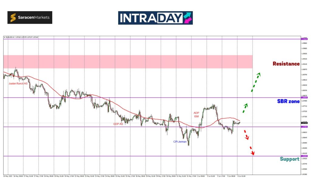 Namun jika lonjakan harga semalam hanya sementara dan harga menyambung penurunan semula, melepasi paras semalam pada 1.06800 akan mendorong penurunan menuju zon support terbaru pada 1.06000.