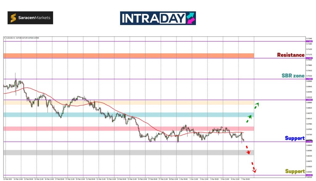 Namun jika harga berjaya melantun naik semula dari paras 0.67000, paras ketinggian awal minggu pada 0.67700 akan dicabar untuk ditembusi harga.