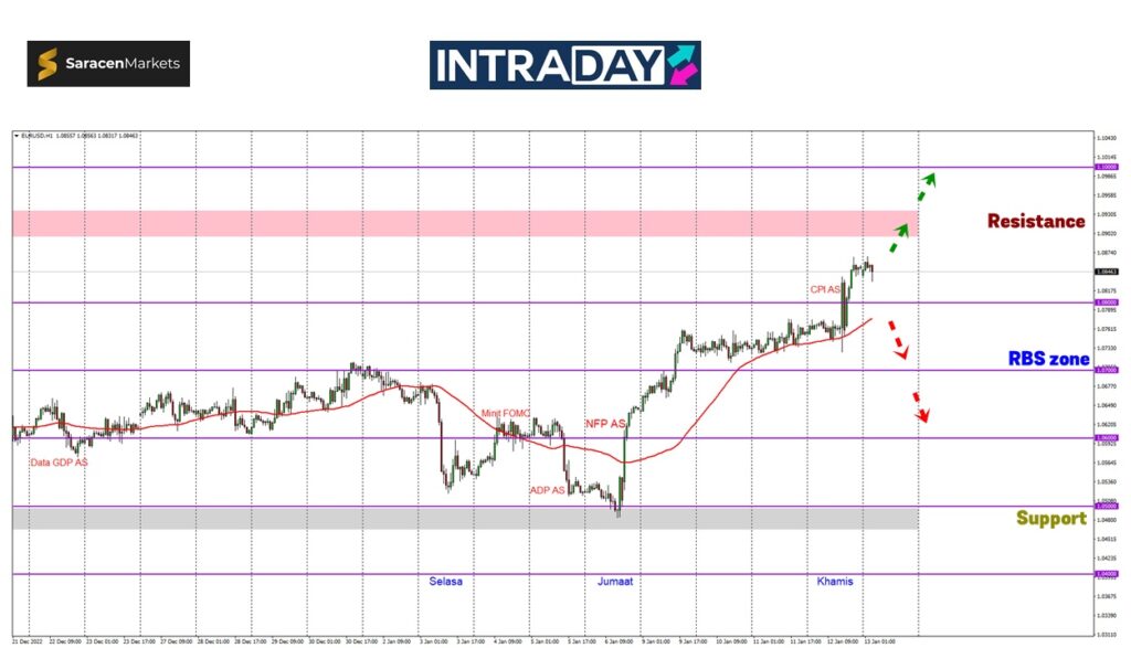 Namun jika membuat penurunan semula pada penutup dagangan penghujung minggu ini, harga yang susut semula di bawah paras 1.08000 akan diperhatikan sama ada menembusi paras sokongan MA50 atau sebaliknya.