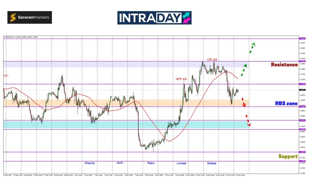 Seterusnya, harga dilihat akan menuju kembali ke zon sekitar 1.19000 yang turut merupakan zon tumpuan sebelum ini.