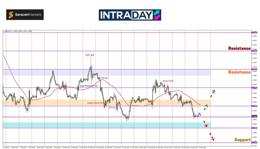 Penurunan harga yang melepasi paras 1.20000 telah menjejak ke paras sokongan 1.19400, namun tidak berjaya menyambung penurunan lebih rendah.
