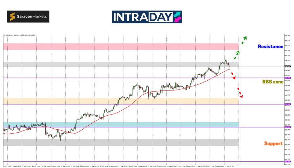 Jika harga turut di bawah sokongan MA50, paras 139.300 pula akan cuba untuk ditembusi sebelum memaparkan pergerakan bearish harga yang lebih jelas.