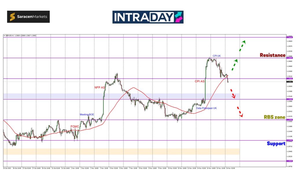Penurunan lanjut jika diteruskan dilihat akan menuju ke zon tumpuan sebelum ini sekitar 1.23000 iaitu zon lonjakan harga bermula pada Selasa lalu.