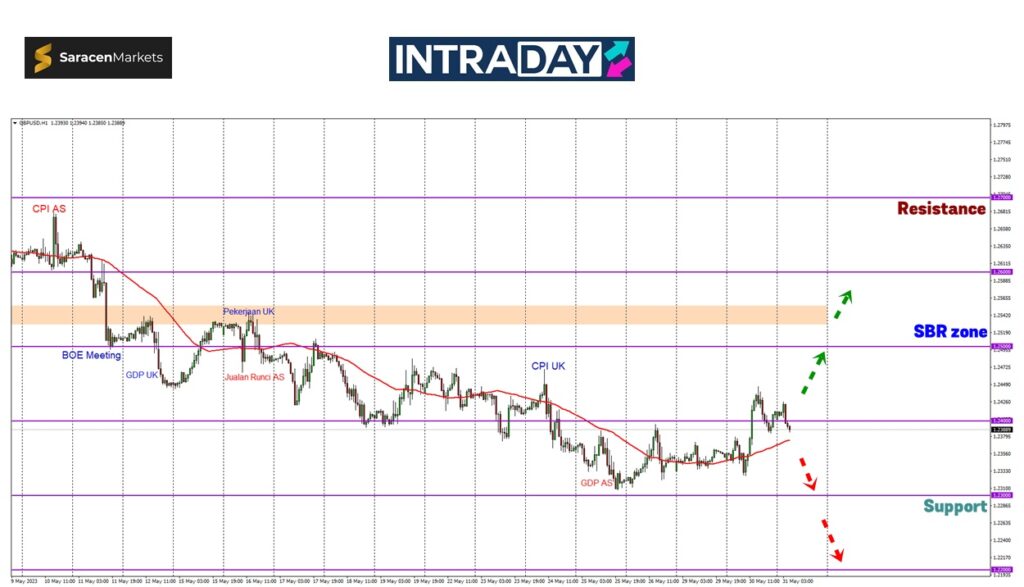Harga bakal menguji zon sokongan pada 1.23000 dan tembus lebih rendah, paras terendah terbaru bakal dicatatkan dengan sasaran adalah ke sekitar 1.22000.