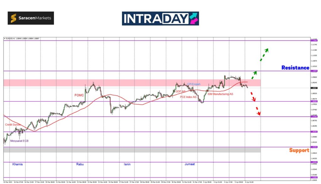 Sebaliknya, jika US dolar kembali melemah, harga akan meneruskan semula pendakian untuk menuju sasaran 1.1000 yang dijangka akan menjadi zon rintangan terbaru.