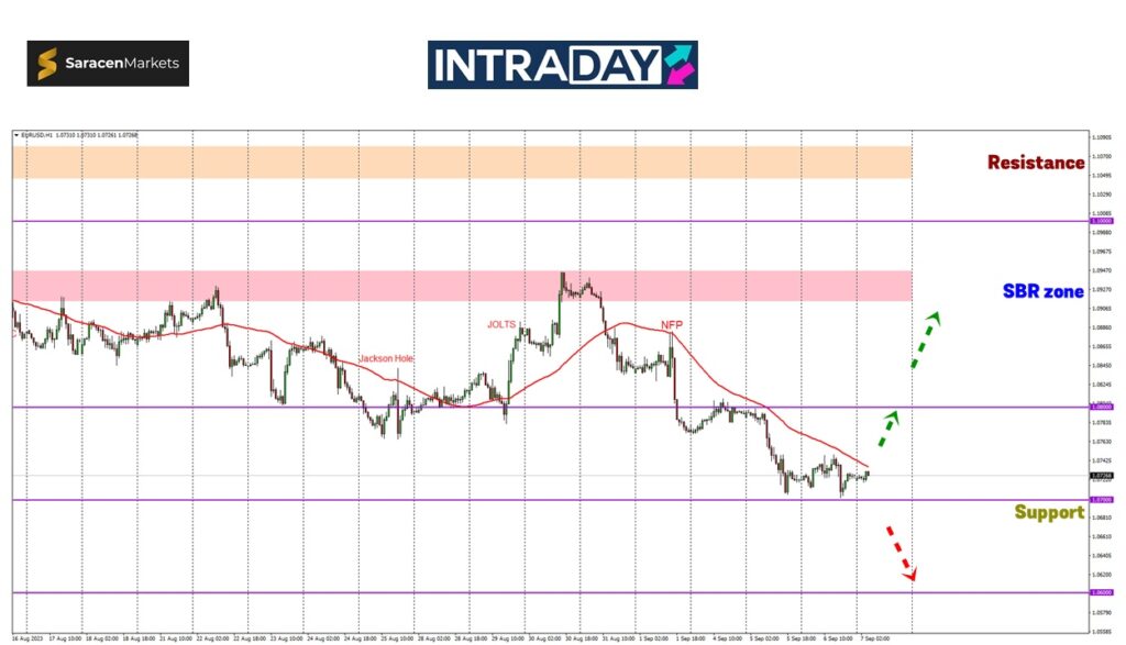 Penurunan lebih rendah akan dijangkakan untuk paras 1.07000 ditembusi sebelum harga mencatatkan paras terendah yang terbaru.