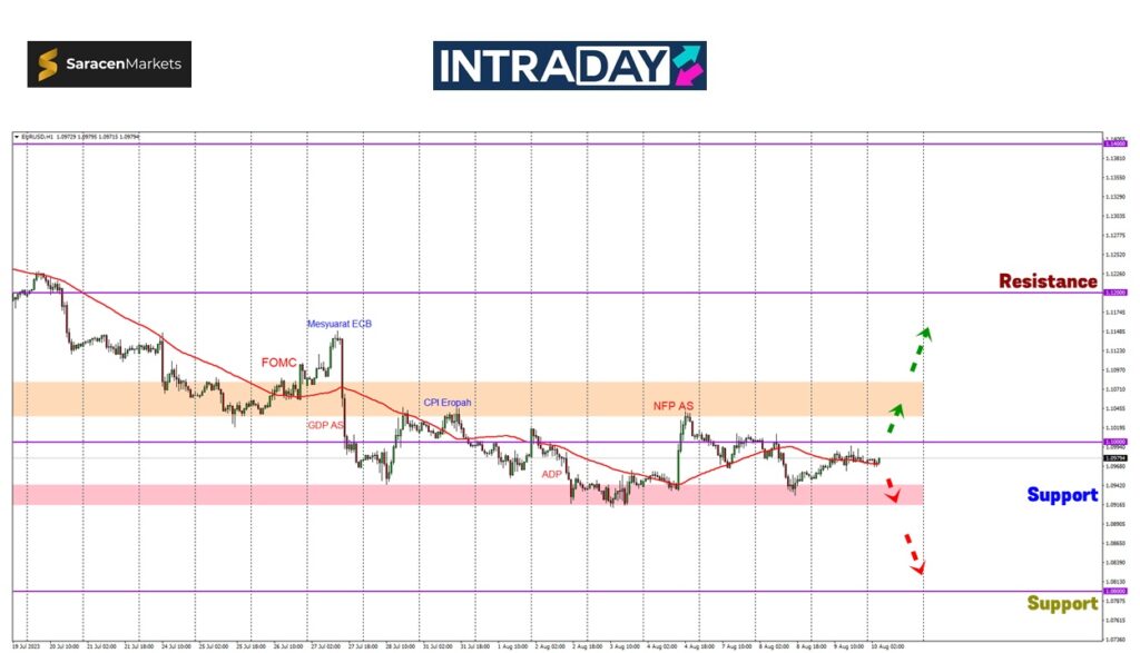 Sekiranya harga tembus melepasi zon tersebut, penurunan lebih rendah bakal menjangkakan harga menuju 1.08000 untuk paparkan pergerakan bearish lebih jelas.