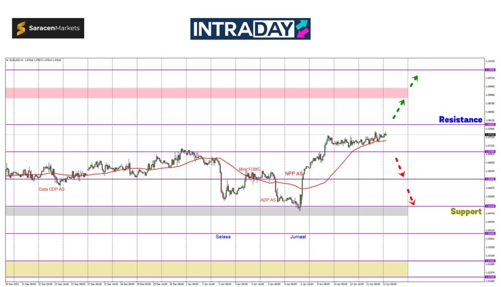 Sasaran pada rintangan 1.08000 dilihat akan menjadi tumpuan bakal diuji oleh harga dan turut akan mencatatkan paras ketinggian terbaru lagi.