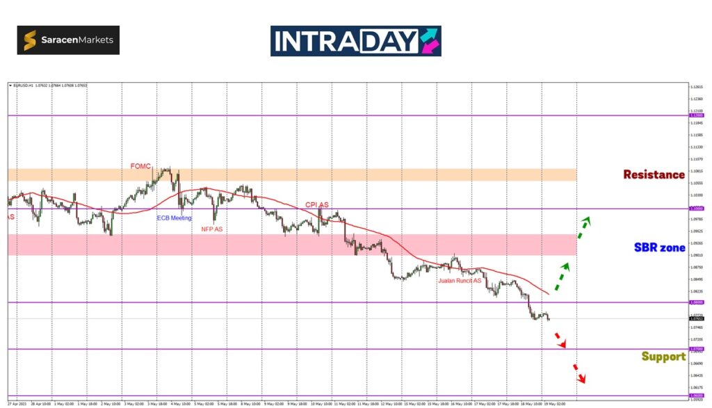 Penurunan lebih rendah jika diteruskan lagi hari ini dilihat akan menuju sasaran terbaru yang telah beralih ke 1.07000.