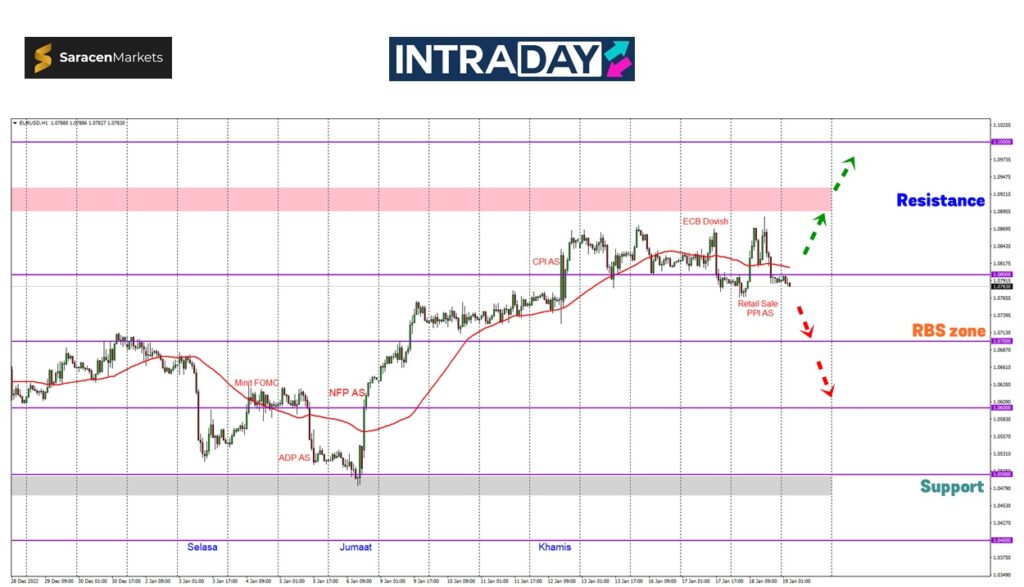 Namun jika berlaku lonjakan semula dari zon 1.08000, paras ketinggian dicapai minggu ini berkemungkinan diatasi untuk menuju ke zon 1.09000 pula.