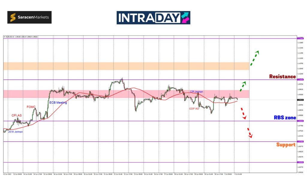 Tidak berjaya susut di bawah paras sokongan Moving Average 50 (MA50) pada rangka masa 1 jam di carta EUR/USD, harga kembali mendatar di atas zon 1.09000 sehingga bersambung ke sesi Asia pagi ini.
