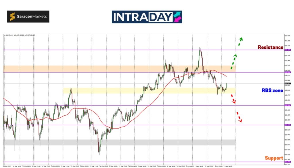 Meneliti carta GBP/JPY pada Rabu semalam, harga telah menyambung penurunan dari paras 164.500 sehingga mencecah sekitar zon RBS (resistance become support) pada 163.00.