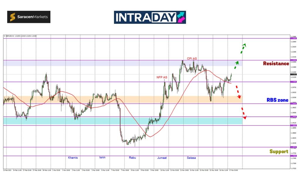 Kenaikan harga jika diteruskan dilihat akan menuju semula ke zon rintangan 1.22000 yang sebelum ini dicapai dan diuji di awal minggu namun masih belum berjaya ditembusi.