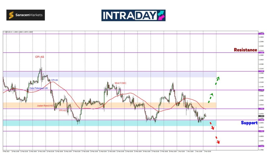 Zon support 1.19000 akan terus menjadi tumpuan untuk diuji jika penurunan harga berlaku, dan jika harga berjaya tembus lebih rendah, paras 1.18800 pula akan cuba untuk dilepasi.