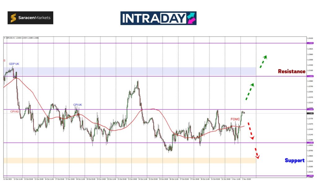 Paras 1.22000 diperhatikan sama ada mampu ditembusi oleh harga sebelum memaparkan pergerakan bullish yang seterusnya mensasarkan ke zon rintangan berikutnya pada 1.23000.
