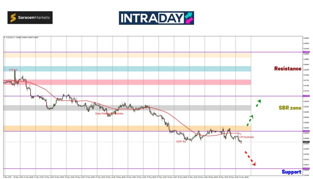 Namun setelah gagal dilepasi, harga menunjukkan penurunan dengan tempo yang agak perlahan dan cuba untuk mengatasi paras terendah minggu lalu di bawah 0.65000.