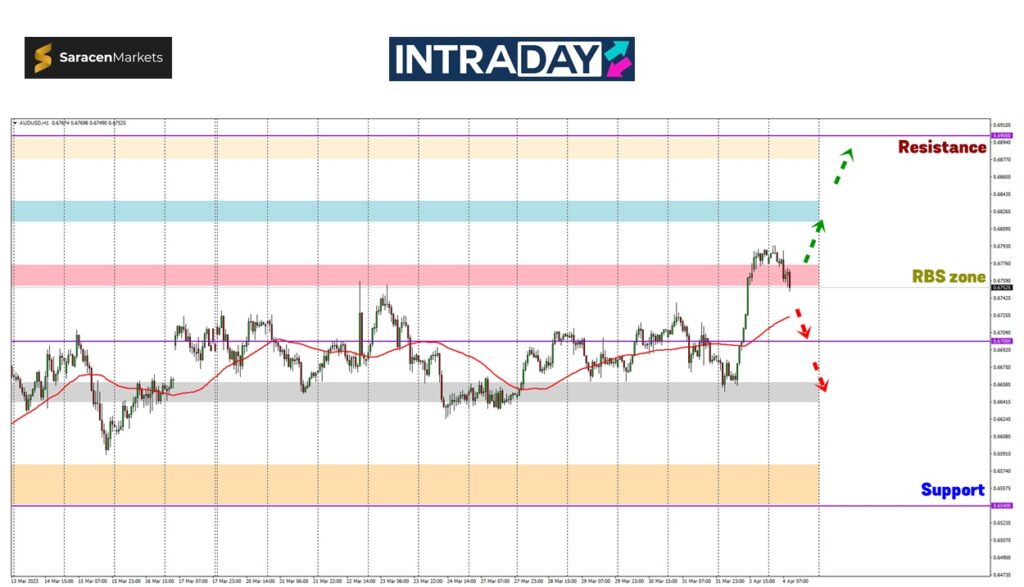 Sekiranya lonjakan berjaya diteruskan semula, harga dilihat bakal menuju ke zon sekitar 0.68300 sebelum melanjutkan kenaikan ke ketinggian 0.69000.