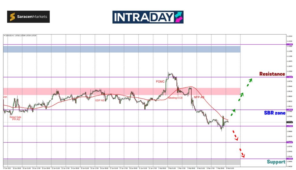 Jika diperhatikan pergerakan harga pada carta pasangan mata wang EUR/USD, penurunan harga telah dipamerkan di sesi Eropah sehingga mencecah paras 1.06700.
