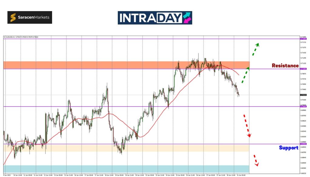 Penurunan harga dilihat akan menuju ke paras 0.70000 untuk menguji paras yang telah menjadi support buat harga minggu lalu.