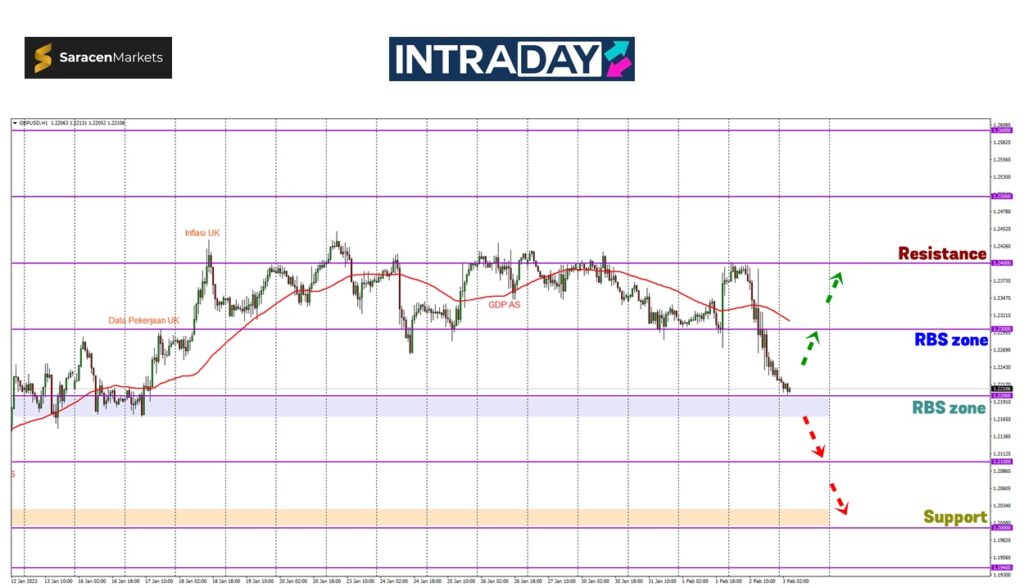 Penurunan lanjut bakal dijangkakan menembusi 1.22000 sebelum menuju pula ke sekitar 1.21000.