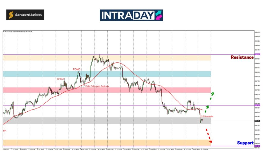Sekiranya berlaku lonjakan harga semula, paras 0.67000 dilihat sebagai zon penting yang bakal diuji sebelum isyarat perubahan trend dinilai dengan paras MA50 yang akan diuji.
