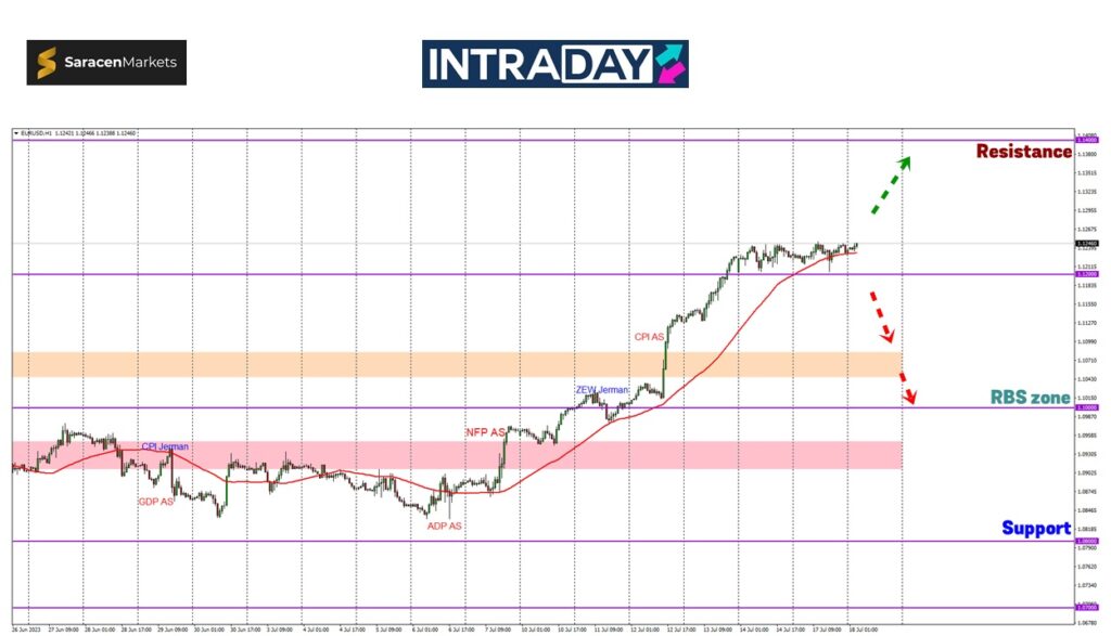 Sekiranya berlaku kejatuhan semula harga di bawah paras sokongan MA50 dan melepasi 1.12000, corak penurunan dijangka bakal bermula.