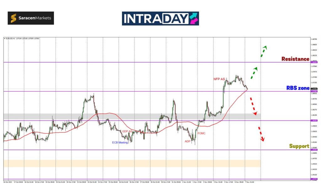Namun, sekiranya harga menjunam ke bawah zon 1.07000 selepas melepasi paras sokongan MA50, pelabur akan menilai sebagai isyarat awal untuk pergerakan bearish harga bermula.