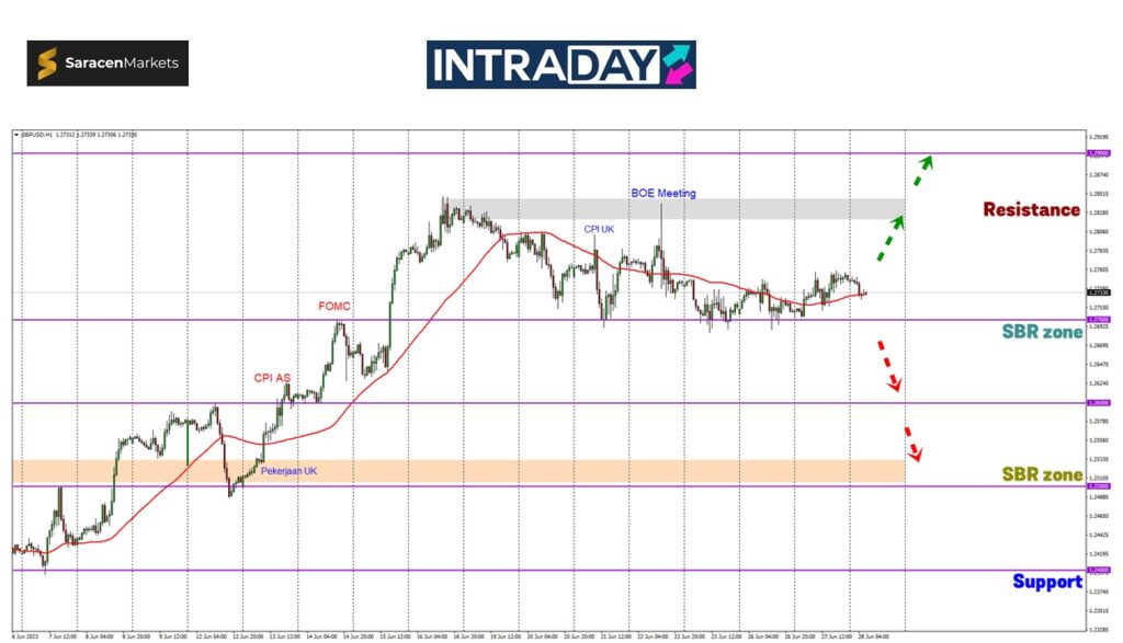 Jika diperhatikan, masih lagi paras 1.27000 menjadi sokongan buat harga dengan harga dilihat kekal berlegar di zon RBS (resistance become support) tersebut sejak minggu lalu.