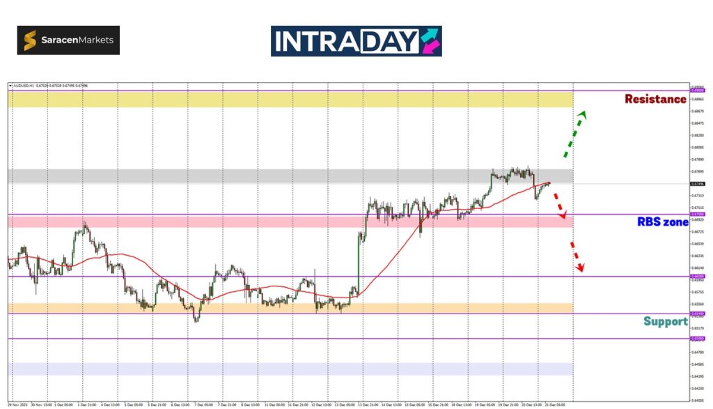 Penurunan awal akan dijangkakan untuk hampiri semula zon 0.67000 yang menjadi zon RBS (resistance become support) harga dan reaksi di sekitar itu akan memberi petunjuk ke mana harga akan tuju seterusnya.