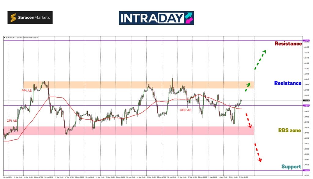 Pada sesi Eropah, harga dilihat membuat penurunan setelah menyentuh paras 1.10000, mencecah paras terendah untuk tempoh 2 minggu ini sekitar 1.09400.