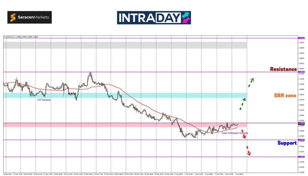 Jika harga meneruskan kenaikan melepasi 1.35000, harga bakal menuju semula zon tumpuan bulan lalu sekitar 1.36600 dengan isyarat pergerakan bullish yang lebih jelas.