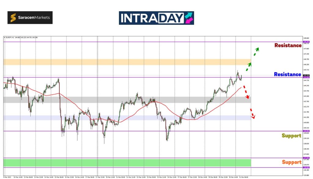 Jika diperhatikan pada carta EUR/JPY, harga yang memulakan dagangan di awal minggu sekitar 140.500 akhirnya telah mencapai paras ketinggian 145.00 setakat sesi New York semalam.