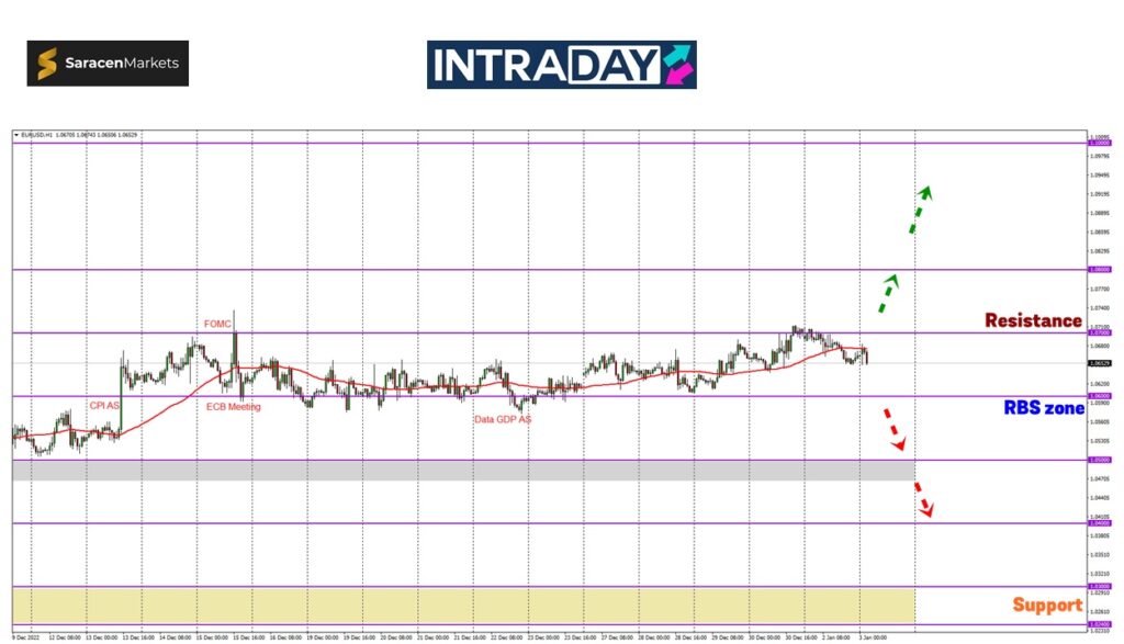 Meneliti carta harga pasangan mata wang EUR/USD, harga memulakan dagangan di sesi Asia semalam sekitar paras 1.07000 selepas harga berjaya menutup dagangan 2022 pada penghujung minggu lalu di sekitar tersebut.