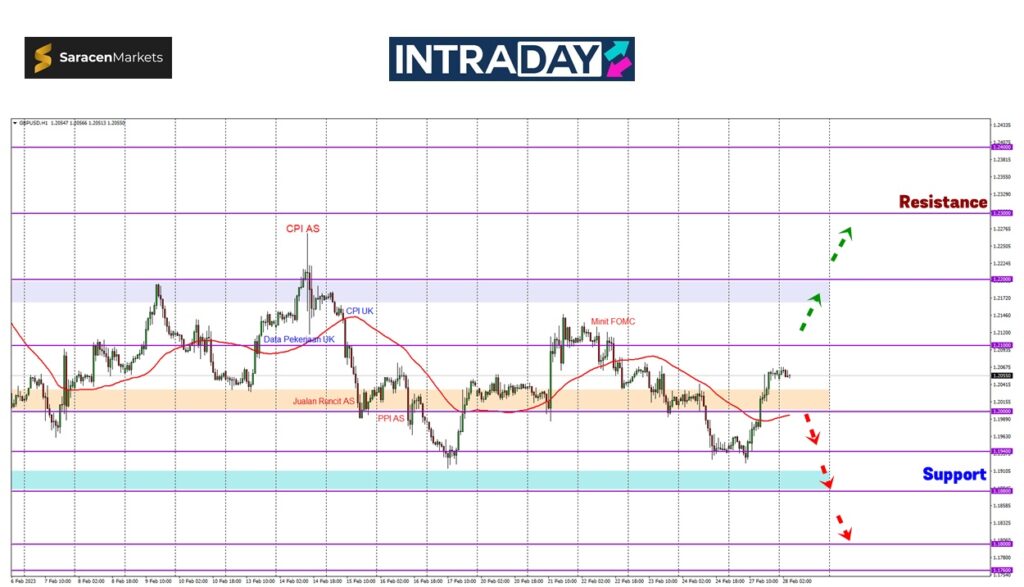 Susut kembali di bawah zon 1.20000 akan melihatkan harga akan menuju semula ke paras sokongan awal minggu sekitar 1.19400 tersebut.
