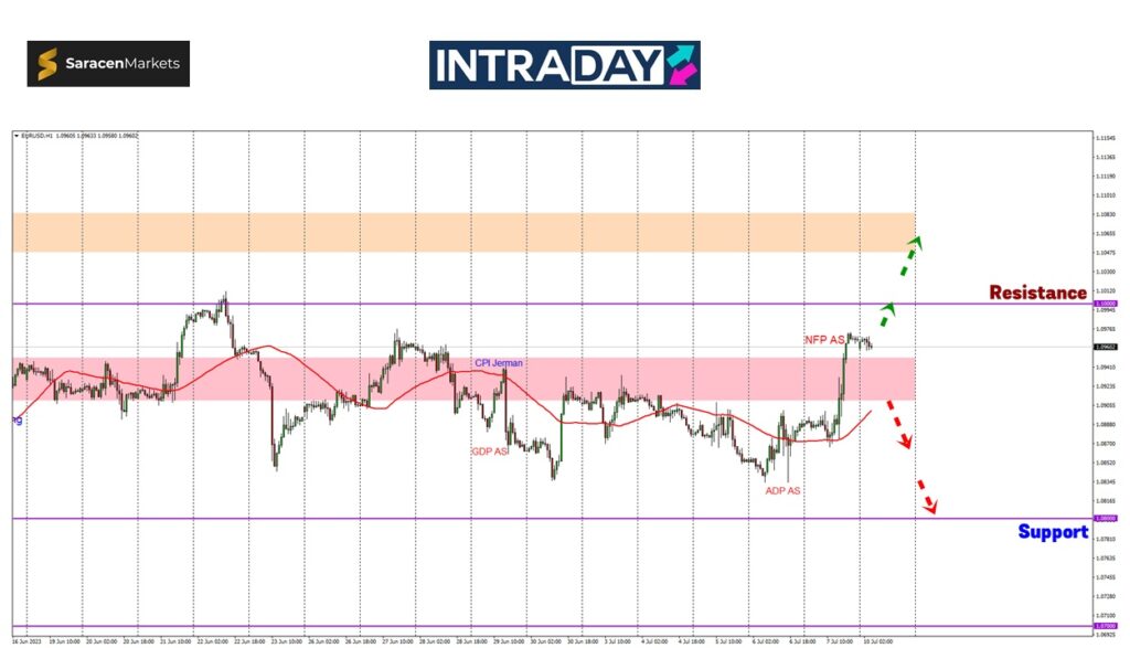 Setelah menguji seketika paras sokongan itu di sekitar 1.08700, harga kemudiannya melonjak tinggi susulan reaksi laporan NFP yang diterbitkan.