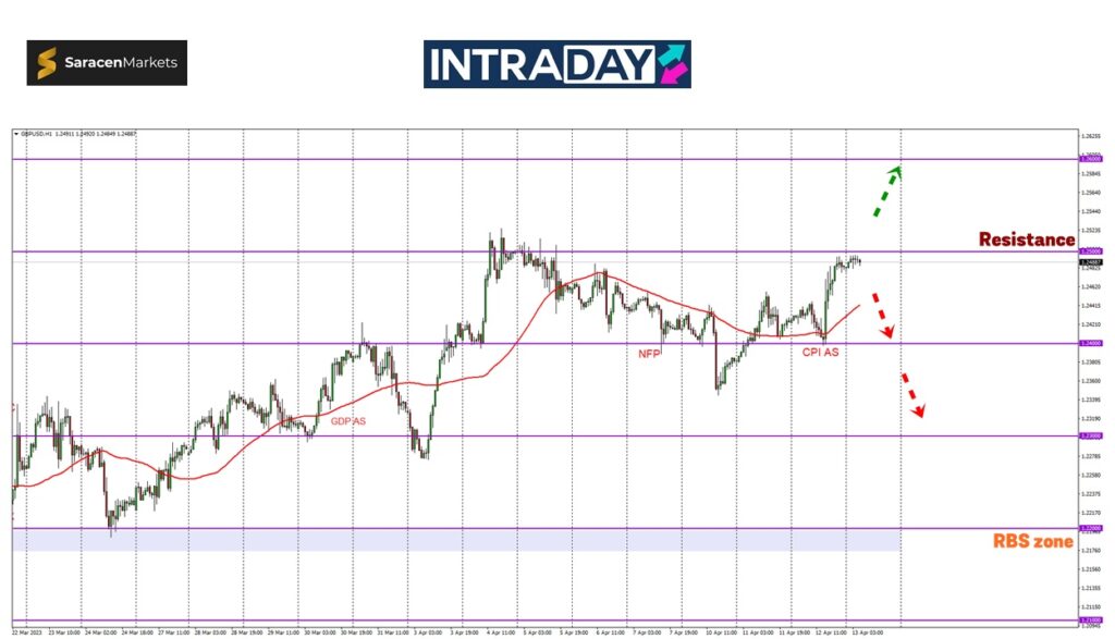 Namun, waspada sekiranya harga beralih arah membuat penurunan semula dan bakal kembali menguji kembali paras sokongan pada 1.24000 yang dicecah semalam.