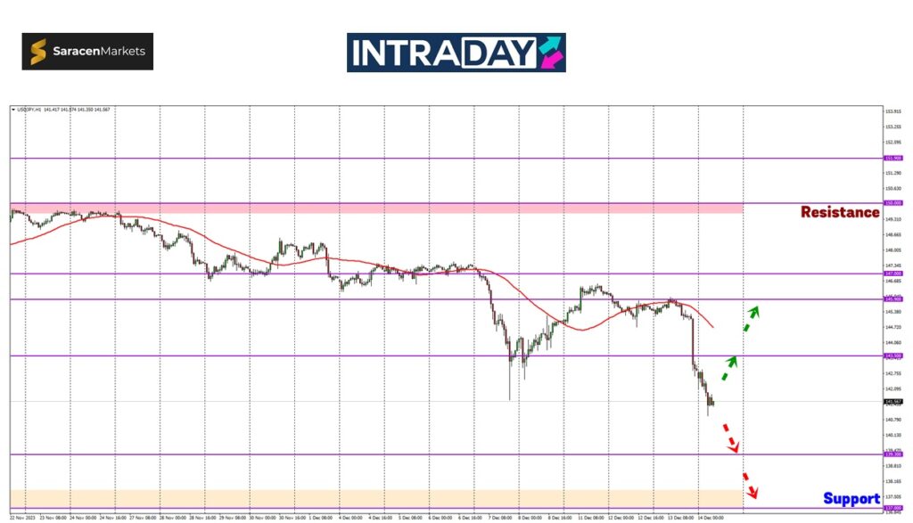 Harga turun di bawah zon 142.00 dan sedikit melepasi paras yang dicecah pada Khamis minggu lalu dengan momentum penurunan dilihat masih akan diteruskan.