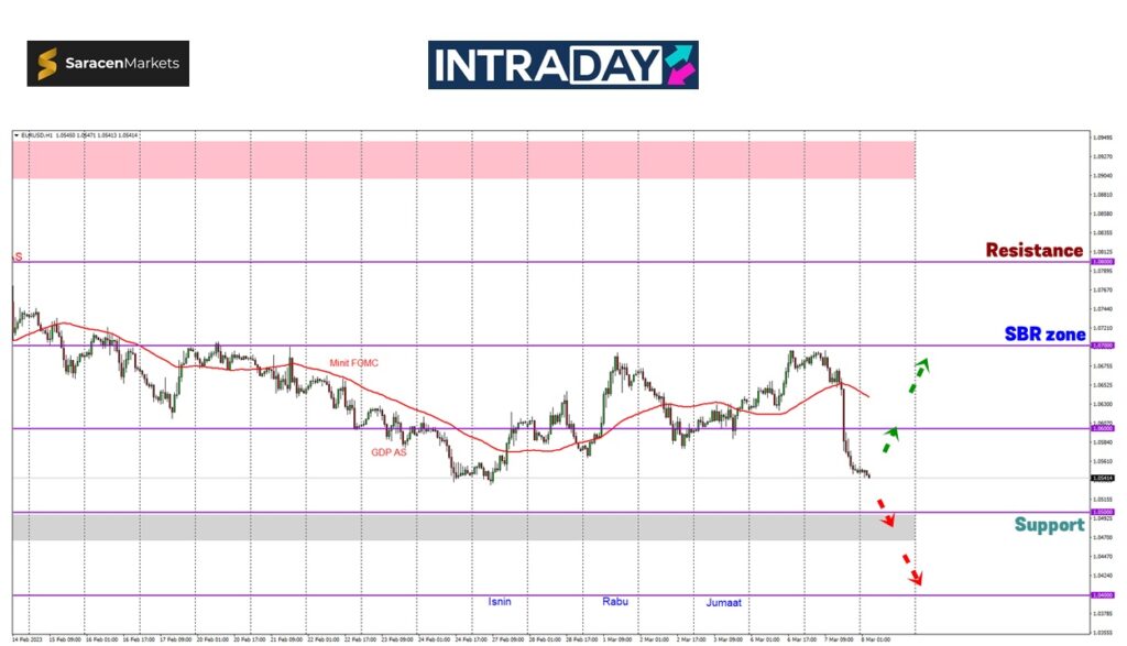 Paras awal pada 1.06000 akan menjadi tumpuan untuk diuji sebelum kenaikan jika berjaya diteruskan akan kembali menuju zon rintangan pada 1.07000.
