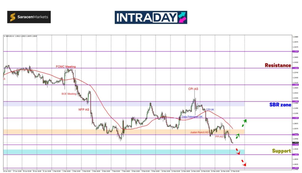 Harga dilihat menguji paras tumpuan pada 1.19400 sebelum penurunan yang diteruskan bakal menguji pula paras 1.18800.