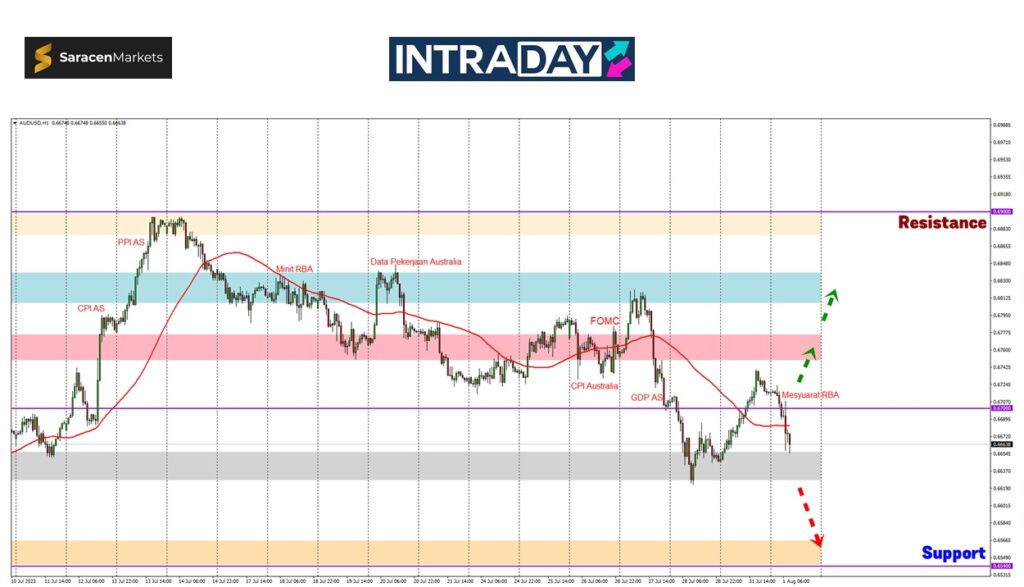 Penurunan dijangka akan dilanjutkan menuju paras 0.66300 yang menjadi sokongan harga diuji pada dagangan penghujung minggu lalu.