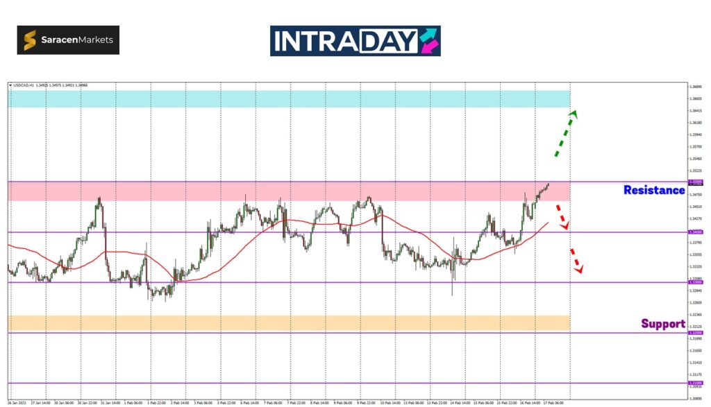 Kenaikan bakal diteruskan jika melepasi paras 1.35000 seterusnya mencatatkan ketinggian terbaru dengan sasaran menuju sekitar 1.36500.