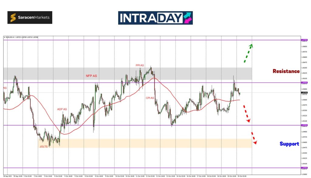Pada carta pasangan mata wang EUR/USD, harga yang mendatar pada mulanya di sekitar 1.05300 kemudiannya telah paparkan kenaikan sehingga paras tumpuan 1.06000 telah diuji.