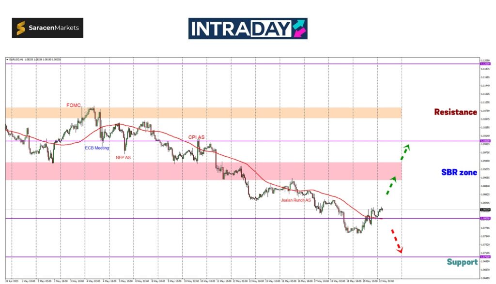 Namun jika harga kembali dibenam di bawah paras 1.08000, berkemungkinan trend bearish harga minggu lalu akan diteruskan lagi.