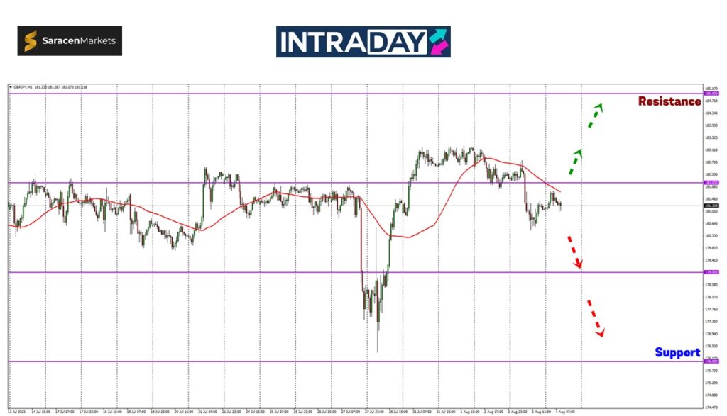 Sekiranya penurunan berlaku, harga bakal menuju sehingga ke sekitar 179.00 yang menjadi paras tumpuan terhampir sebelum penurunan lanjut boleh mencecah sekitar 176.00.