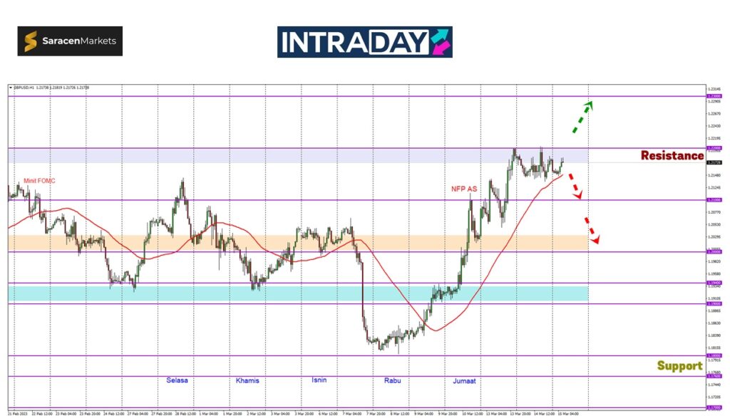 Sementara, jika rintangan 1.22000 gagal ditembusi dan harga mula bergerak turun di bawah paras sokongan MA50, pelabur akan berwaspada untuk perubahan arah trend.